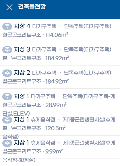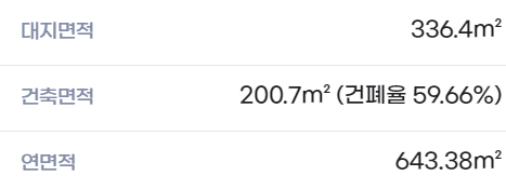 상가분 대지면적을 구할 때 디스코에서 제공되는 건축물대장 정보로 구할 수 있지만, 약간 오차가 있었다. 그래도 대략적으로 보는데는 문제가 없을 것 같다. 아래 예로 보면 336.4 * (120.5+9.99) / 643.38 = 68.2로 위의 결과와 약간 차이가 있다.