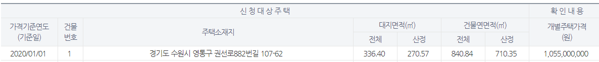 주택분 시가표준액 = 1,055,000,000원 (개별주택공시가격)